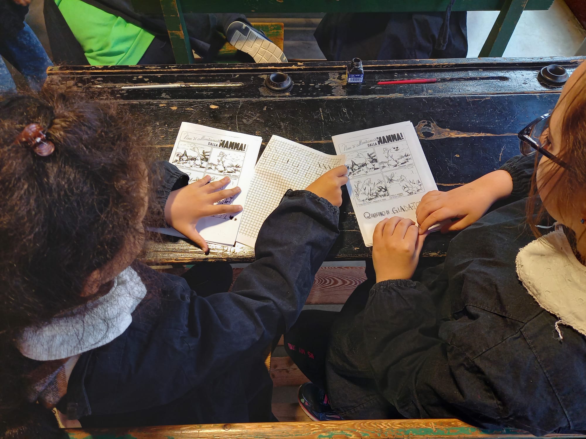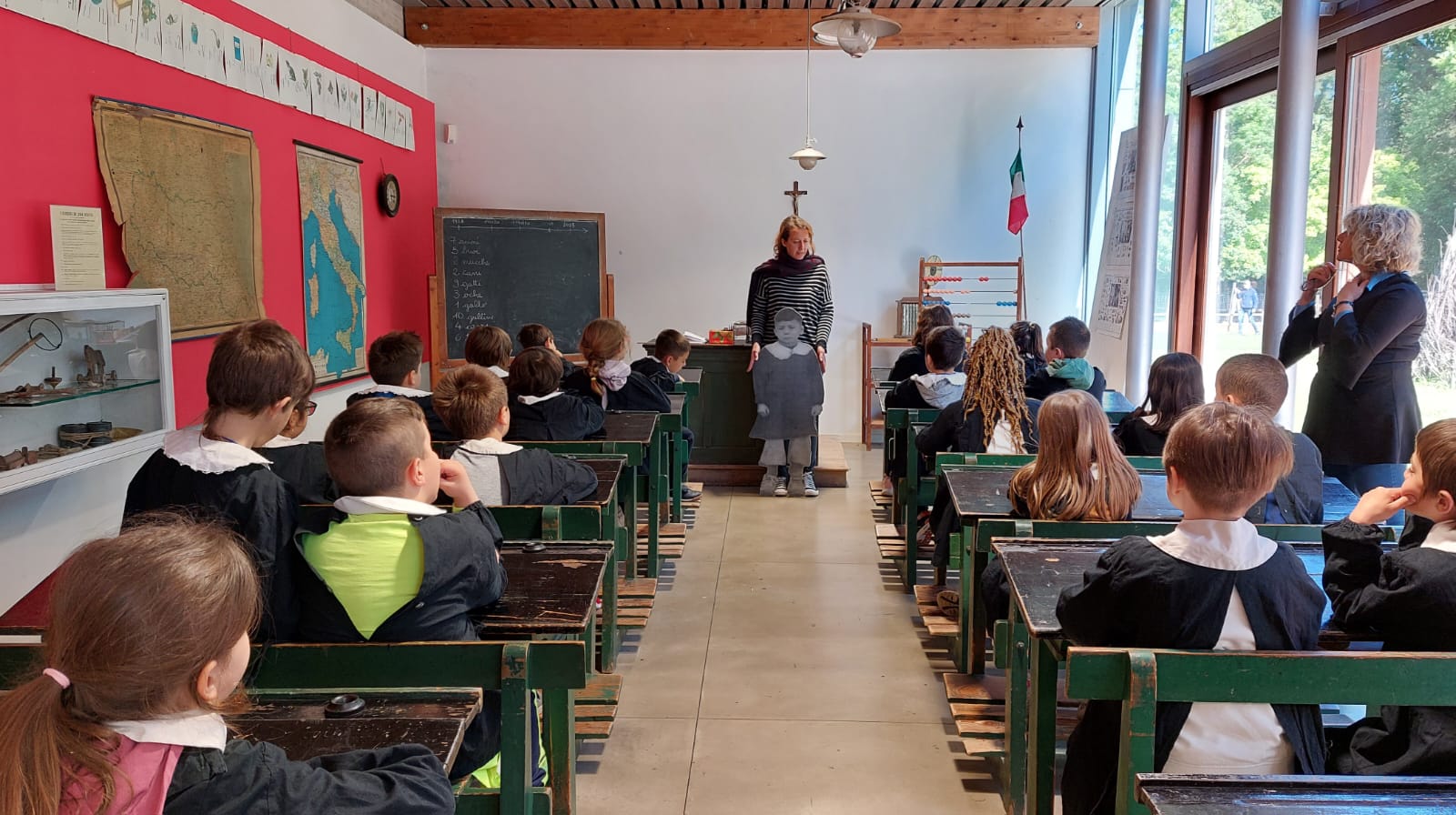 Penna, inchiostro e calamaio - Una lezione di aritmetica, calligrafia e lettura in un’aula scolastica con arredi e strumenti del secolo scorso, per introdurre alcuni aspetti della scuola di base agli esordi dell’Unità d’Italia.